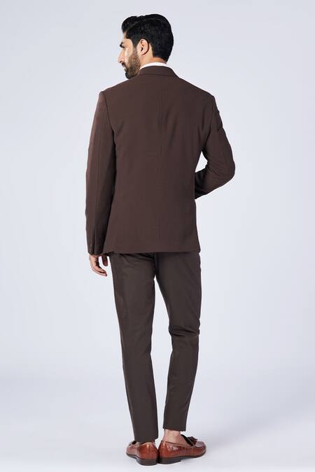 Buy_S&N By Shantnu Nikhil_Brown Lycra, Viscose, Polyester Embroidery Placement Crest Motif Blazer_Online_at_Aza_Fashions