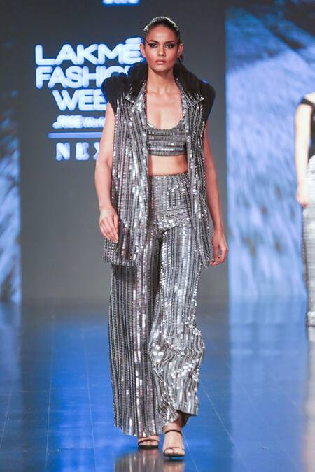 Grey Plastic Sequin Trim And Tulle Lining Butter Crepe Platinum Bralette