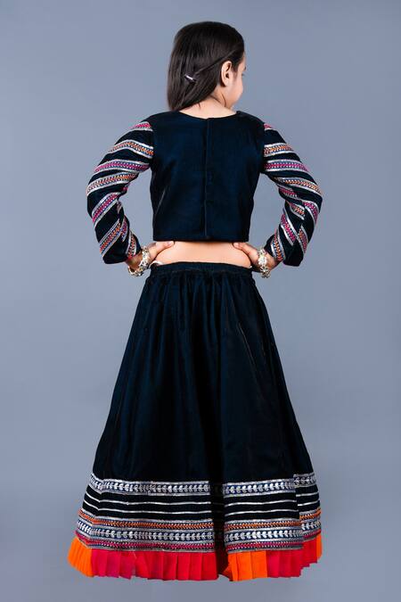 Buy_Shining Kanika_Black Velvet Embellished Linear Pleated And Border Lehenga Set_at_Aza_Fashions