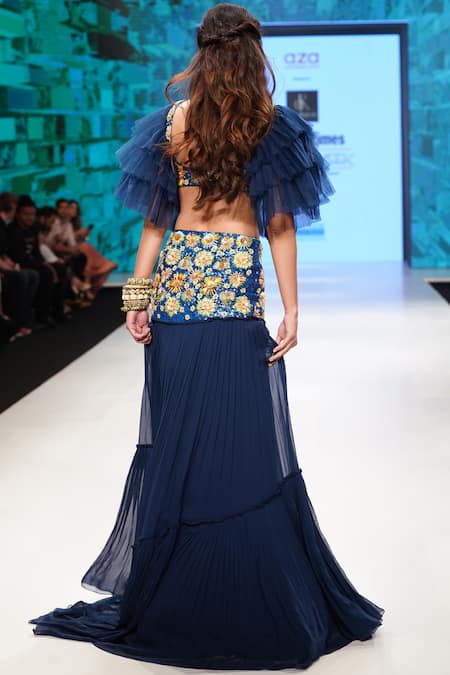 Buy_Diyarajvvir_Blue Square Neck Pleated Lehenga Set _Online_at_Aza_Fashions