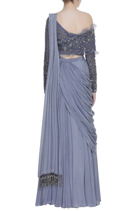 Buy_Nitika Kanodia Gupta_Grey Organza, Crepe Pleated Lehenga With Attached Dupatta And Embroidered Blouse_Online_at_Aza_Fashions