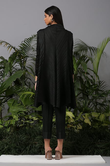 Pleats By Aruni_Black Polyester High Pleated Tunic And Pant Set_Online_at_Aza_Fashions