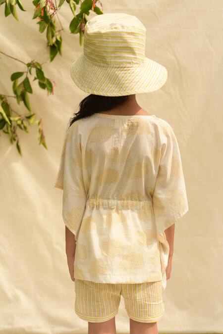 Buy_Plumcheeks_Yellow 100% Hand Block Cotton Kaftan And Shorts Set _Online_at_Aza_Fashions