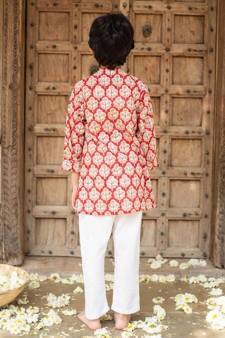 Buy_Plumcheeks_Red Cotton Print Floral Butti Hand Block Kurta With Pant_Online_at_Aza_Fashions