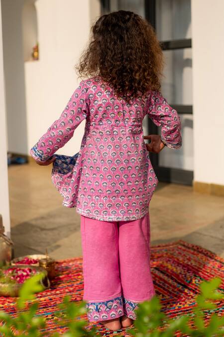Buy_Plumcheeks_Purple Cotton Hand Block Print Orchid Kurta With Pant_at_Aza_Fashions