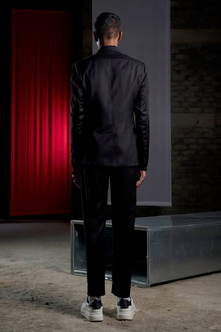 Black straight fit trousers made from Italian suiting fabric featuring side pockets