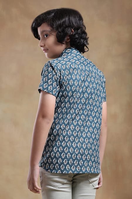 Buy_Pomcha Jaipur_Blue Cotton Dahleez Hand Block Print Shirt _Online_at_Aza_Fashions