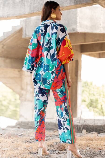 Contrast paradise floral print on shirt and pant, Relaxed fit for comfort, Balloon sleeves for a trendy look