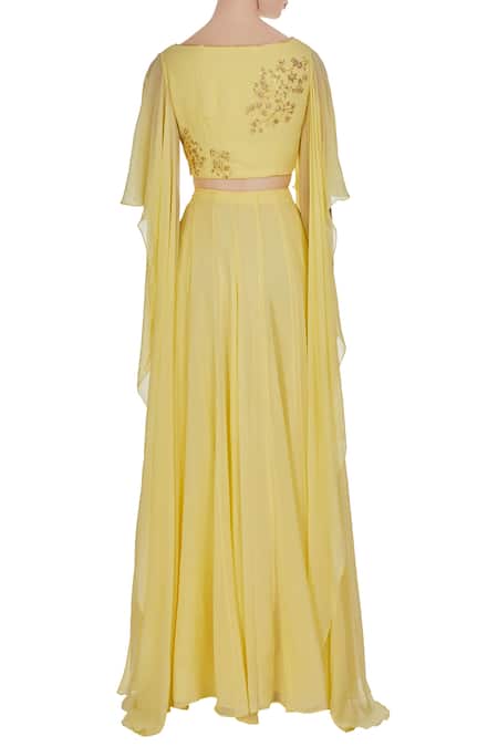 Yellow Georgette Embroidered Cut Dana Hand And Sequin Draped Blouse With Lehenga