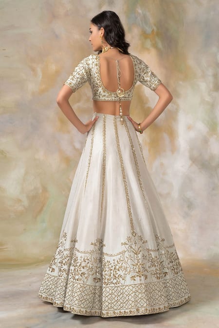 Pista green lehenga with floral embroidered motifs. Comes with embroidered blouse & dupatta.
