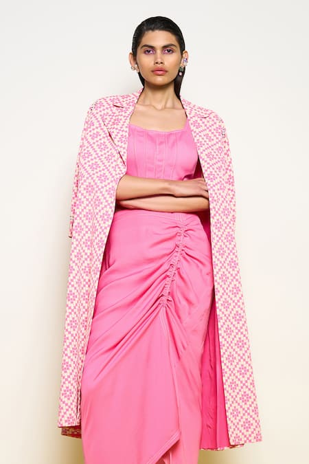 Pink Georgette Collared Honeycomb Repeat Print Jacket