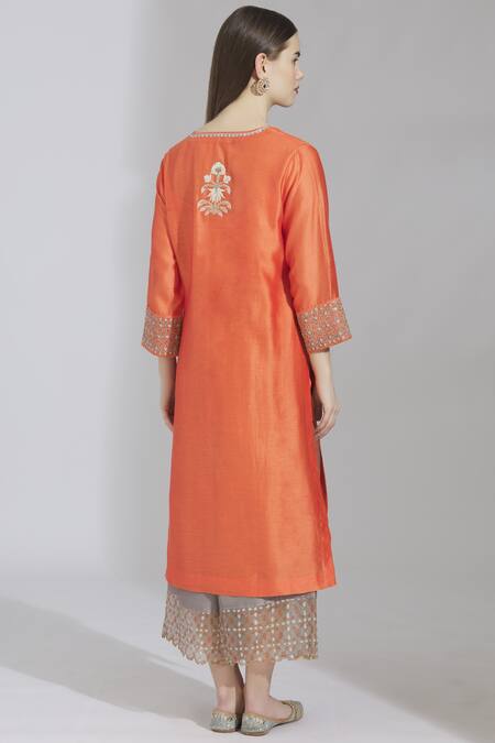Buy_Poonam Dubey_Orange Chanderi Silk Round Kurta Palazzo Set _Online_at_Aza_Fashions