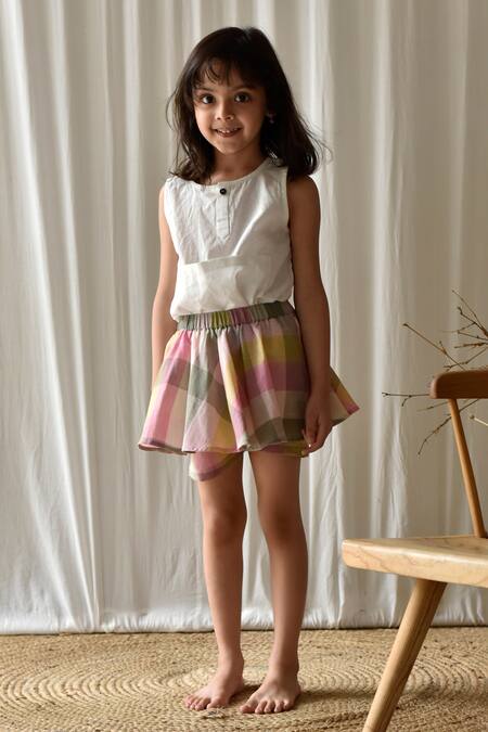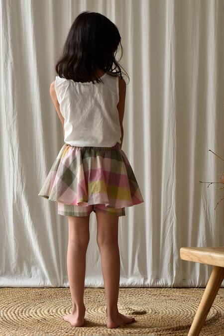 Shop_Kharakapas_Multi Color 100% Cotton Checkered Popsicle Overlay Shorts_at_Aza_Fashions