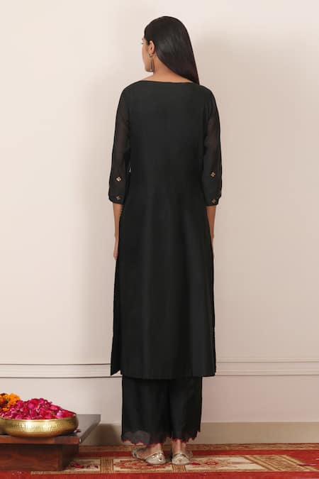 Black Kota, Mercerised Cotton Chanderi Straight Embroidered Kurta Set