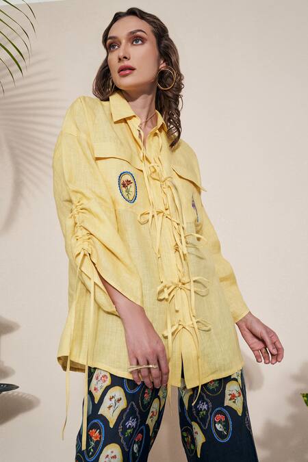 Yellow Hemp Embroidery Billie String Detailed Shirt