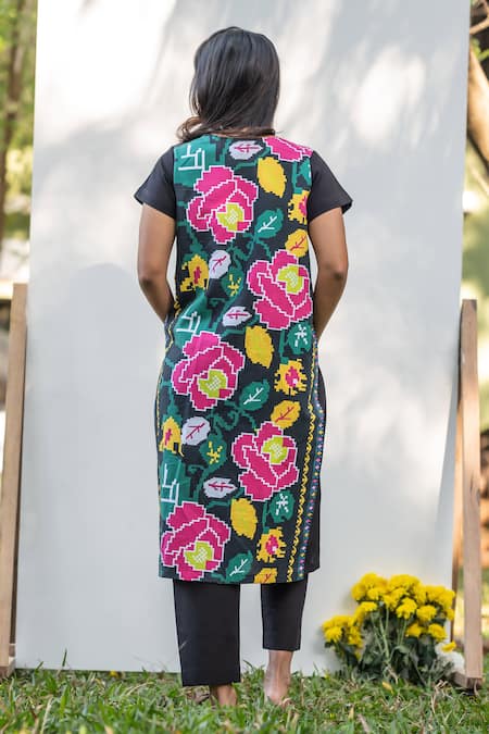 Buy_Prachi Kamat_Black Cotton, Linen Round Neck Front Slit Kurta With Solid Pant