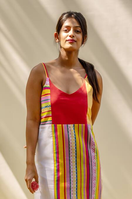 Patch work detailing on the back, Side slit for ease of movement, All-over Portuguese print