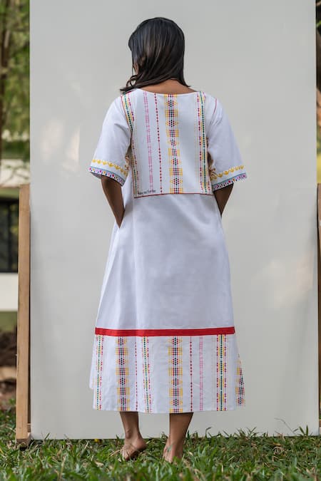 Buy_Prachi Kamat_White Cotton, Linen Embroidery Round Neck Portuguese Print Midi Dress _Online_at_Aza_Fashions