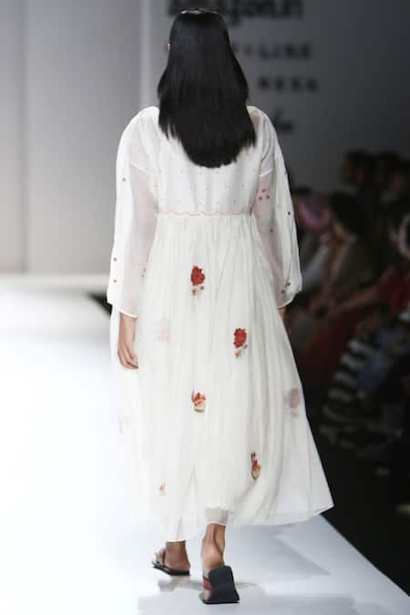 Buy_Prama By Pratima Pandey_Off White Ivory Floral Midi Dress And Inner  _at_Aza_Fashions