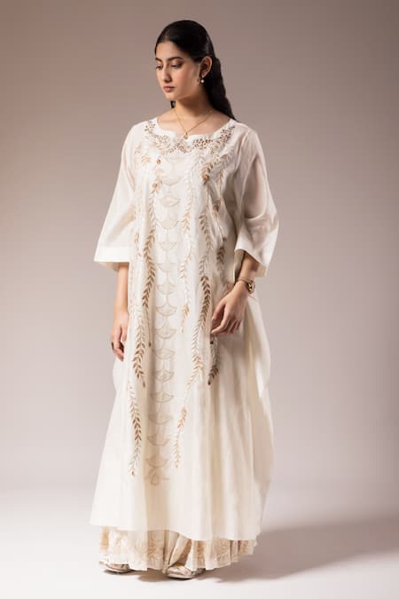 Ivory Silk Chanderi Embroidery Vine Round Ivy Kurta With Inner Dress
