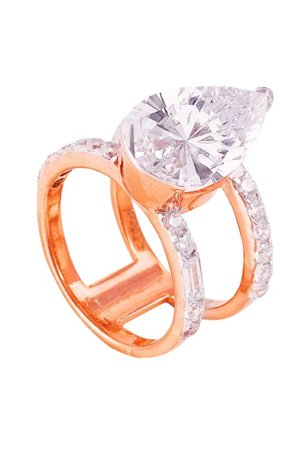 Gold plated dual band design, Studded with pear cubic zirconia, Unique open band style