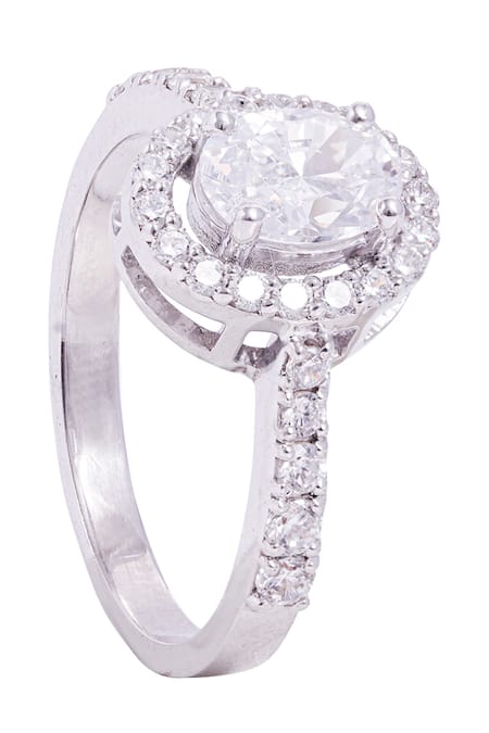 White Crystals, Diamonds Cubic Zirconia Halo Ring