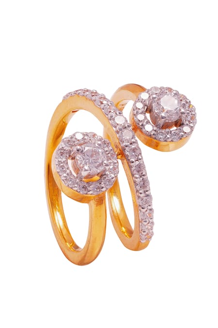 Gold plated finish with spiral design, Studded with round cubic zirconia stones, Unique dual circular stone settings