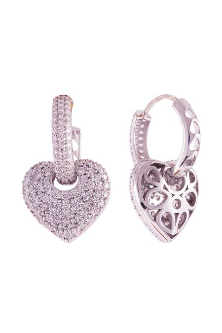 Zirconia embellishments on heart shape, White gold plating for shine, Unique heart design with intricate detailing