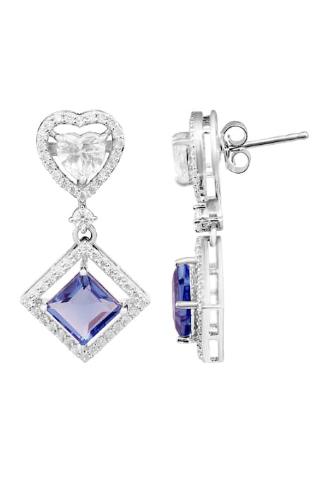 Blue heart stone drop earrings featuring imported cubic zirconia and semi-precious gemstones