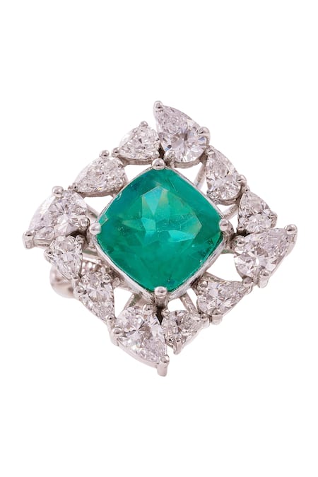 White Crystals, Stones Radiant Emerald Revelry Ring