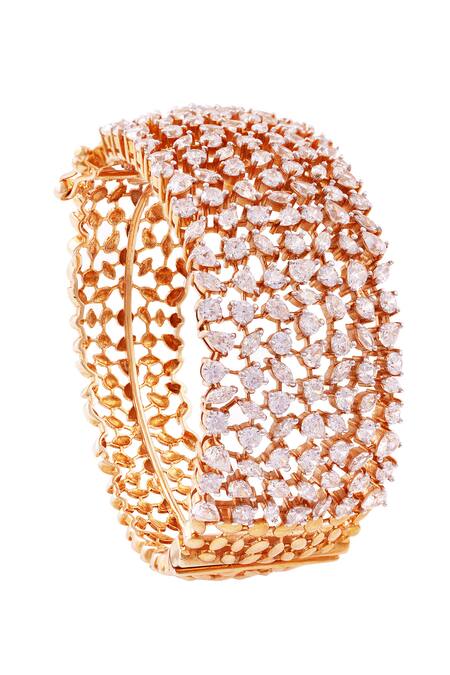 White bracelet featuring gold plated 925 silver with cubic zirconia stone cluster patterns