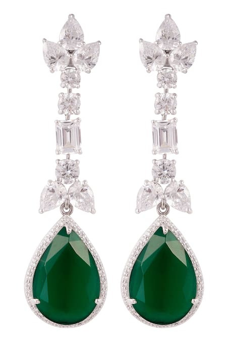 Buy_Prata_Green Diamonds, Stones Tear Drop Embellished Long Earrings _at_Aza_Fashions