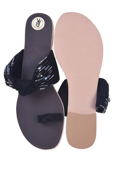 Buy_Preet Kaur_Black Sequins Embroidered Knotted Sandals_at_Aza_Fashions