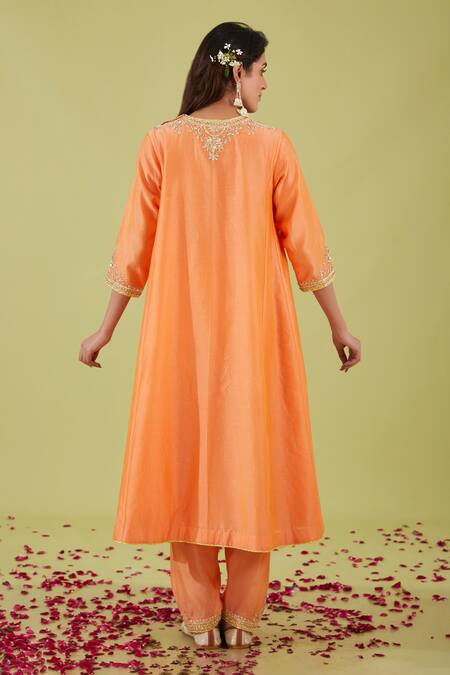Peach Organza, Chanderi Gota Patti, Phool Nakshi Yoke Embroidered Anarkali Set