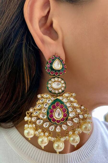 Emerald Green Pearls, Diamonds Kundan Choker Set