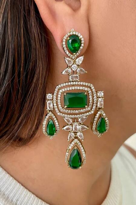 Emerald Green Gemstones, Crystals Kanch Victorian Necklace Set