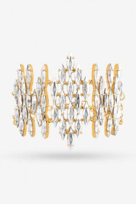 Gold bracelet featuring crystal embellishments and intricate cutwork detailing