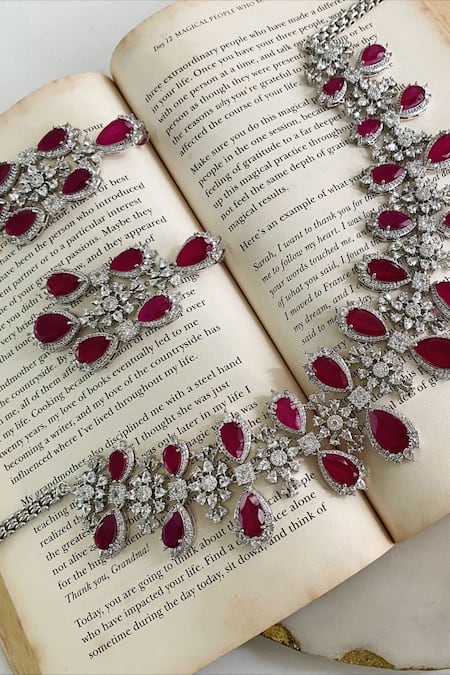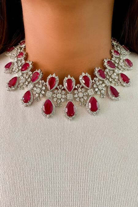 Red Stones, Crystals Infinite Ruby Swarovski Floral Necklace Set
