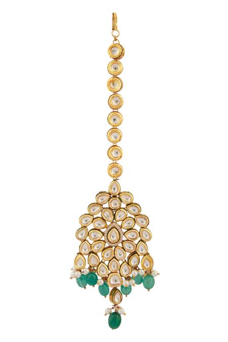 18k gold plating, Kundan embellishments, Green ovate bead accents