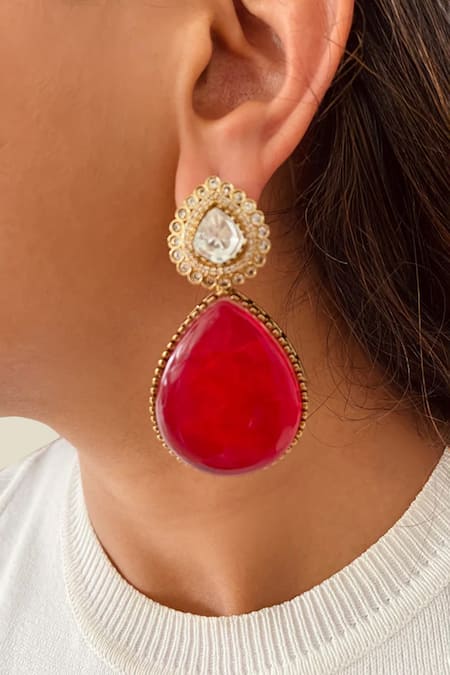 Three-layer design, Teardrop ruby doublet embellishments, Moissanite accents