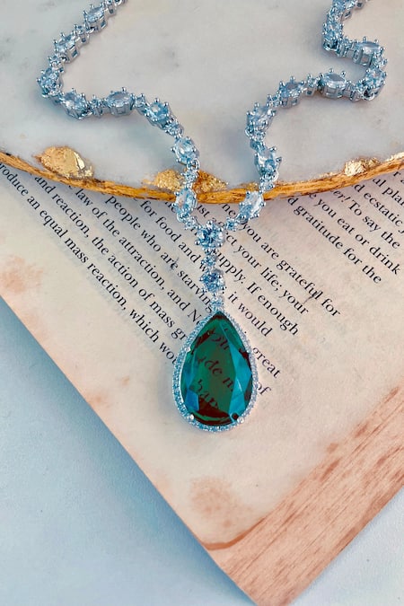 Geometric pattern design, Embellished with stones, Teardrop emerald pendant
