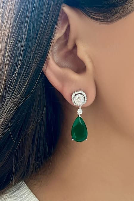Tear drop emerald green semi-precious stones, Circular diamond-like Swarovski crystal clusters