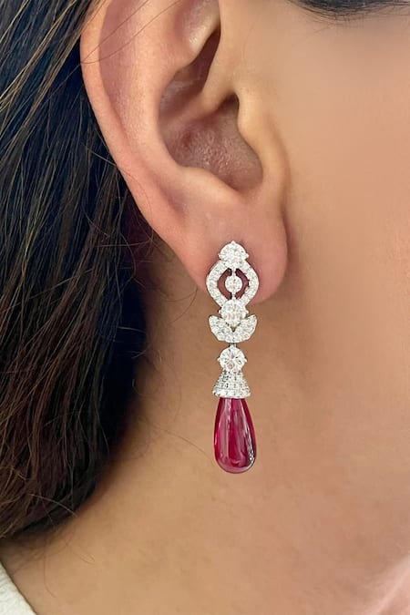 Leaflet & circular design, Teardrop ruby red stones, Zircon crystal embellishments