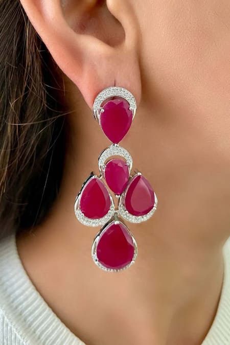 Double layered design with ruby pink stones, Diamond setting around the stones, Handmade with semi-precious stones