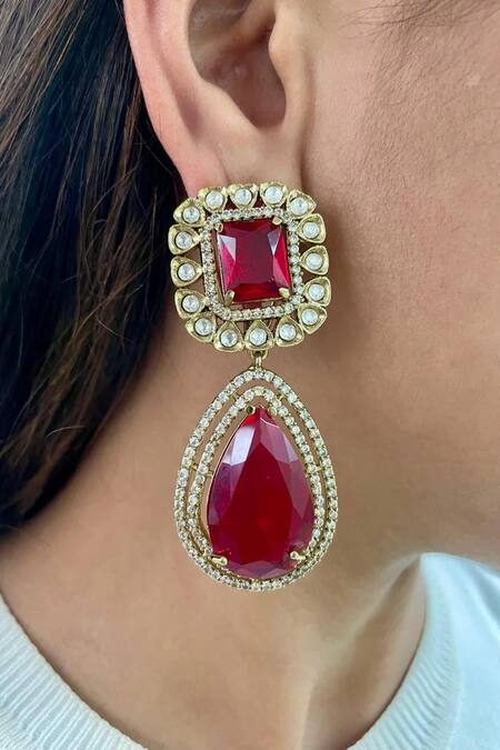 Red Rhinestones, Stones Ruby Kundan Polki Necklace Set