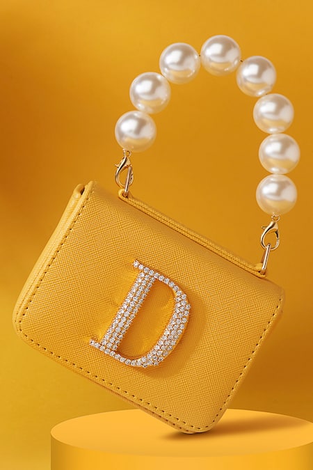 Initial embellishment with rhinestones, Detachable pearl handle, Gold chain strap for versatility
