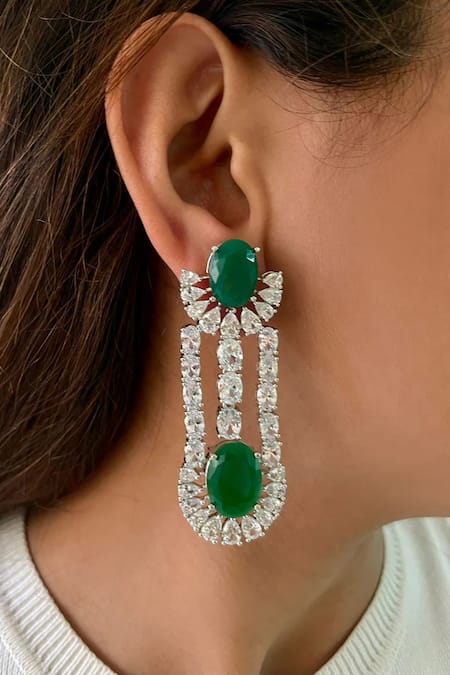 Triple layered design with emerald stones, Semi-precious Swarovski diamonds embellishments, Dangling earring style