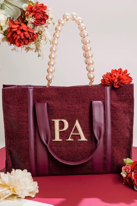 Maroon Swarovski Crystals Vegan Leather Alphabeto Book Tote Bag
