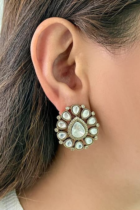 Intricate Kundan Polki detailing, Handmade with semi-precious stones, Pearl drop accents for added elegance