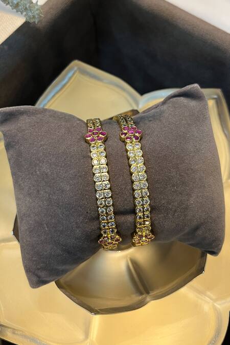 Red zirconia embellished bangles featuring a set of 2 with mix metal construction. Each bangle showcases intricate detailing with a width of 0.5 cm.